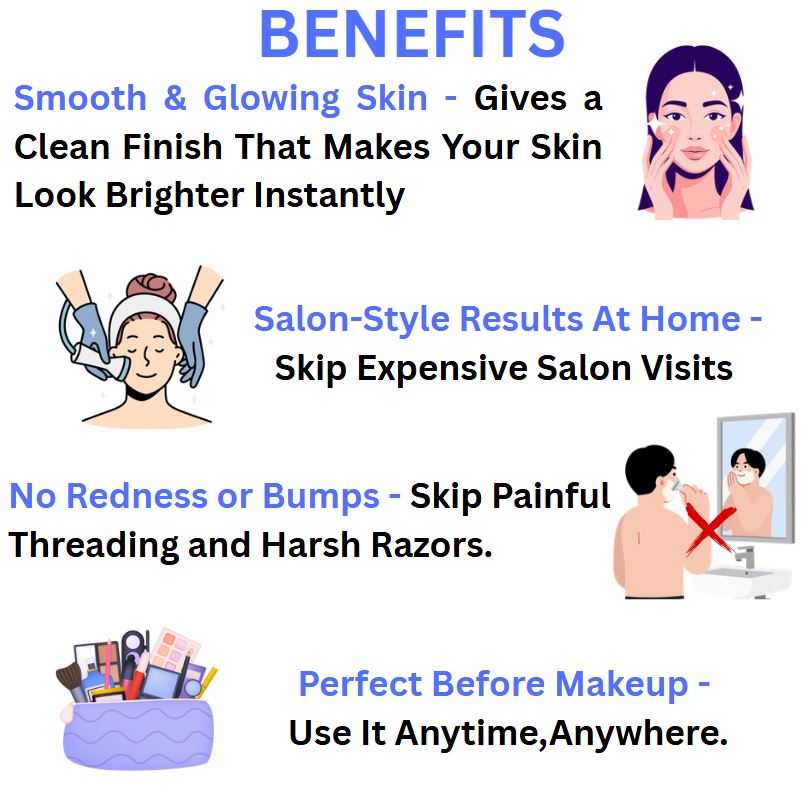 Removes upper-lip hair, peach fuzz and fine facial hair In seconds- leaving your skin looking better, cleaner and makeup ready.